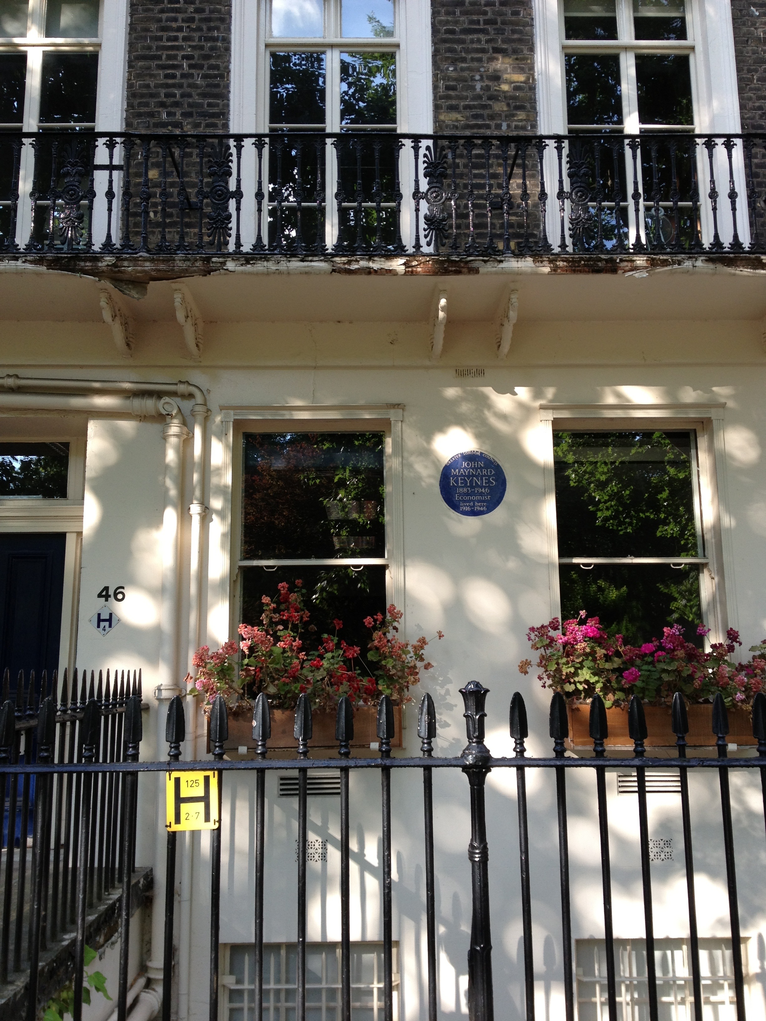 Keynes morou em Bloomsbury, em frente a Gordon Square, casa n 46.