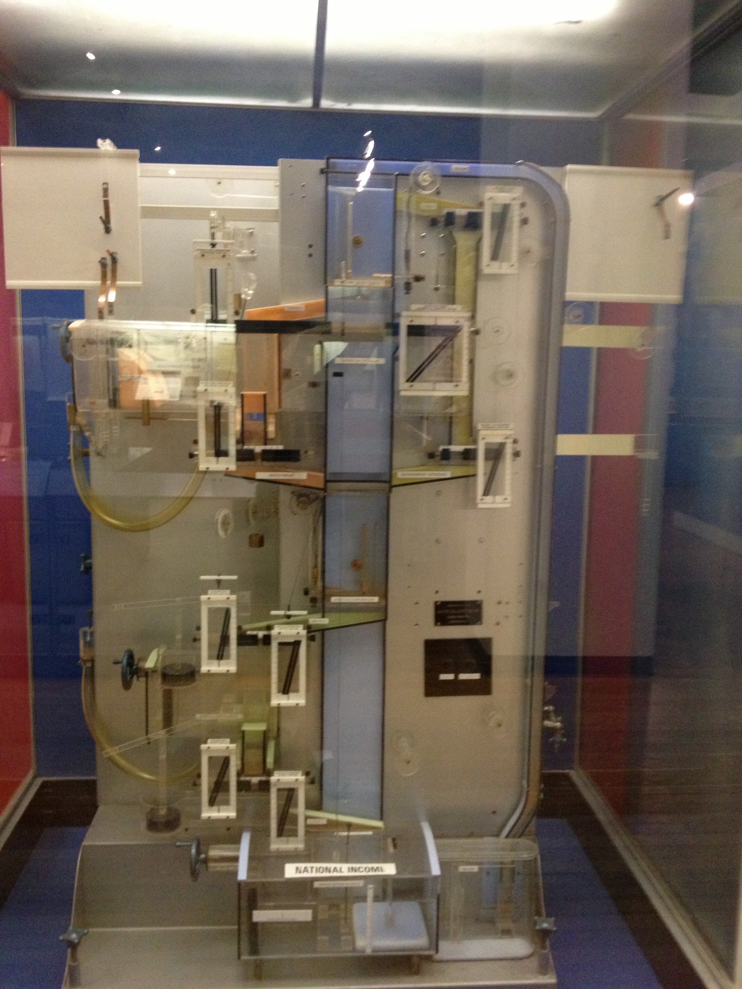 Já no museu de ciência, em South Kensington, você encontra a máquina hidráulica que Phillips (o mesmo da curva de Phillips) criou para explicar a macroeconomia visualmente.